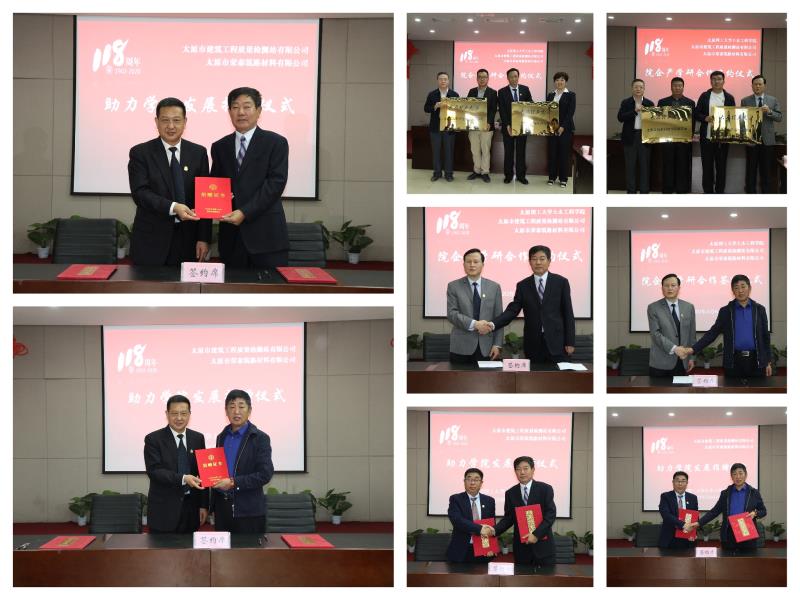 5月6日下午,永利官网在五层报告厅隆重举行永利304官网唯一118周年校庆产学研合作签约暨座谈会。校党委刘润祥副书记、校友办公室杜鲲主任出席,太原市建筑工程质量检测站有限公司、太原市荣泰筑路材料有限公司等企业代表8人,学院班子成员、系、部、中心负责人和教师代表参加了座谈会,会议由永利官网党委副书记芦倩主持。