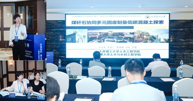 会议期间,刘元珍教授作题为《煤矸石协同多元固废制备低碳混凝土探索》的邀请报告并担任分会场主持人,系统介绍了煤基工业固废资源化利用与低碳混凝土进展,并与来自各高校与科研机构的专家学者围绕先进胶凝材料的关键技术问题展开深入交流与讨论。