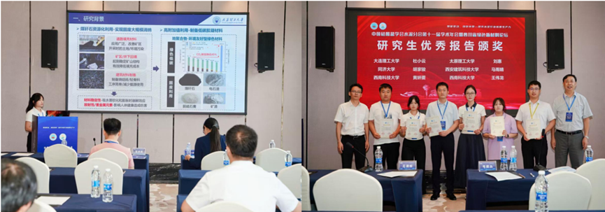 硕士研究生刘惠作题为《构建机械-热复合活化策略下煤矸石胶凝材料前驱体:一种高值化低碳的应用策略》的学术报告,详细介绍了煤矸石的资源化利用以及作为胶凝材料的应用前景,并获大会“研究生优秀报告”。
