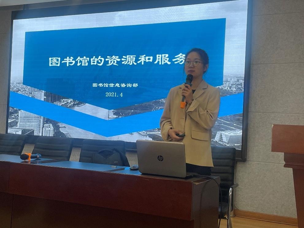 报告会开始,由图书馆信息咨询部任宋洁老师进行了题为《图书馆的资源和服务》的介绍,对图书馆的资源、图书馆提供的服务、定期举办的活动等信息进行了详细讲述,并对于师生比较关心的专利检索服务疑问,卢同同主任进行了耐心解答。