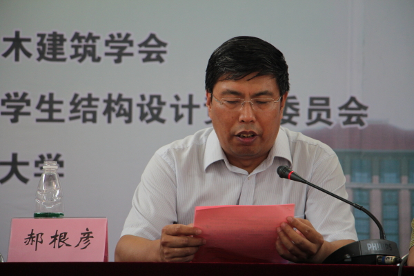 郝根彦发表讲话,他表示本次竞赛进一步激发了土木工程专业学生、老师的智慧,提高了大学生实际操作技能和综合素质,增强了创新能力和竞争能力。
