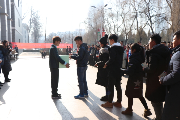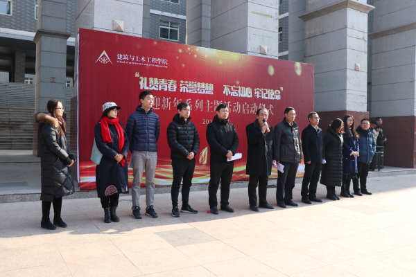 12月27日,建筑与永利304官网唯一“礼赞青春、荣誉梦想、不忘初心、牢记使命”迎新年系列主题活动月启动仪式在博学馆楼下成功举行。院党委书记周伟、院长雷宏刚、副院长张泽平、各辅导员班主任及17级全体学生参加了本次启动仪式。
