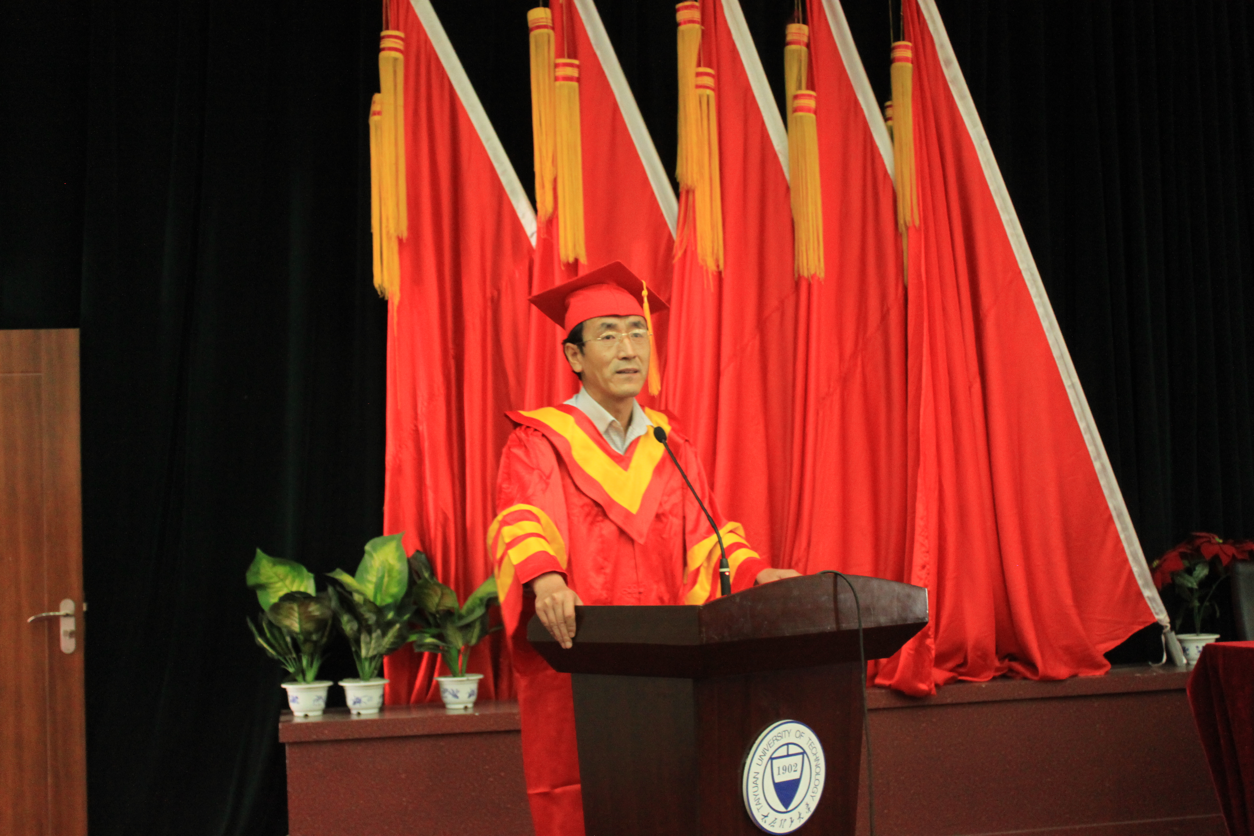 院长雷宏刚以“你给学院留下了什么”为题发表致辞。他首先祝贺2016届毕业生从建工顺利毕业,并为他们更精彩的明天祝福;列举了学院和优秀学子留下的耀眼成绩,希望同学们“梦存理想笑对逆境,大步前行,唯有经过泥泞的道路才有脚印;追求理想,超越自己,在事业上竭尽全力”,努力成为“胸怀天下,自立自强,一个对社会无私之人”。同时,他希望同学们常回家看看,衷心祝愿同学们风雨兼程,一路平安,前程似锦!
