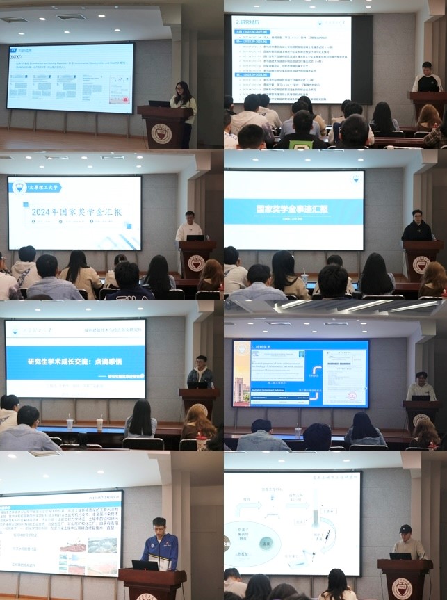 博士研究生崔雯雯同学从专业学习、科研成果、奖学金认识及未来规划等方面进行阐述,分享了科研经验与心得体会,并说明了科研旅途中坚持的重要性,指出坚韧不拔的精神、持续的努力和反复的实验才是科学研究的必经之路。硕士研究生梅圣琪、李赟、李康、马奥炜、孙涵、陈涛、刘嘉江七名同学分别向大家展示了各自的研究方向、研究成果与科研项目参与经历,指出了研究生阶段素质水平与科研能力应共同提高,努力做到持之以恒、勤学善思、全面发展。