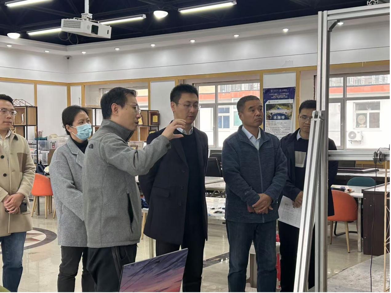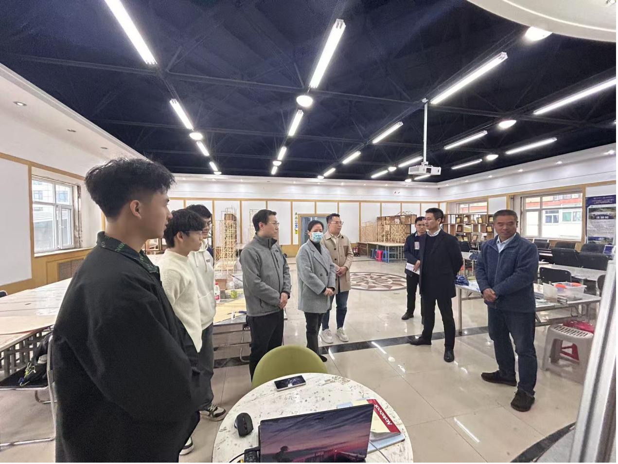 学院领导同指导老师邱斌、安毅,学生郑斌杰、黄锦俊、张旭交流,一同参观结构设计模型加载试验,并询问备赛情况以及备赛过程中遇到的困难,表示学院会为大家备战国赛创造一切有利条件。院领导对模型的设计和质量给予高度评价,并叮嘱学生安全第一。备赛师生感谢学院指导支持,表示备赛计划正有条不紊开展,及时进行查漏补缺,今年有信心取得良好的成绩。