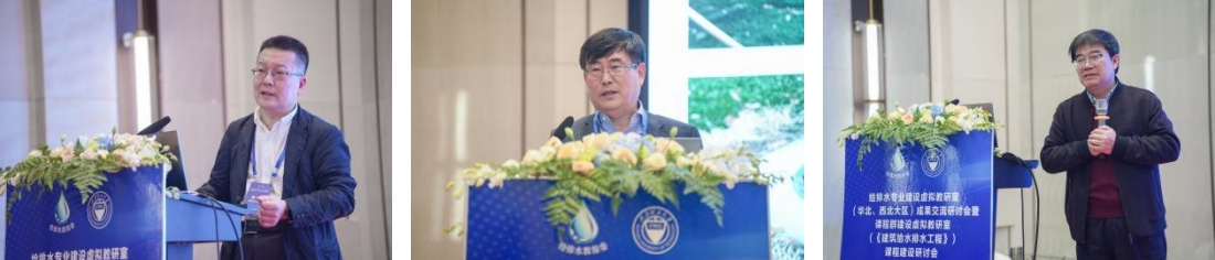 会上,给排水科学与工程专业建设虚拟教研室常务副主任南军教授、全国勘察设计大师赵锂教授级高级工程师和张智教授分别作了“给排水专业实践类数字化课程体系建设”、“建筑给水排水技术的发展与创新”、“新质生产力视域下给排水科学与工程专业教育教学改革的思考”主旨报告。