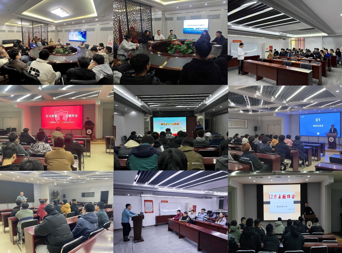在校园安全方面,各班从宿舍安全、实验室安全、消防安全、交通安全等多个角度再检点、再落实。提醒同学们在宿舍、工作室、实验室等场所要规范使用电器,不违规接电线,注意电瓶车使用规范;在校园内要遵守交通规则,骑车、步行时注意观察路况,确保安全。同时,介绍了遇到暴雪、结冰等自然灾害下的应对方法和自救技巧,强化安全技能。