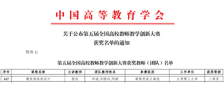 全国高校教师教学创新大赛是经教育部批准,纳入《教育部直属单位三评一竞赛保留项目清单》的唯一一项高校教师教学竞赛,自2020年举办以来已成为高校教师教学竞赛中的顶级赛事。本届大赛以“推动教学创新、培养一流人才”为主题,围绕高校课程思政、“四新”建设、基础课程、产教融合等重点工作展开,充分发挥大赛示范引领作用,提高教师教学水平和育人能力。本届大赛共有12.7万名教师参赛,通过校赛、省赛选拔,2253名教师入围国赛。程欣老师的参赛课程《建筑钢结构设计》紧紧围绕“政治认同、家国情怀、职业道德”三大思政主线,将思想政治教育深度融入专业教学体系,打造了思政与专业共轭的教学新范式,有效促进了学生的全面成长,其教学实效与创新理念赢得了大赛评委的高度认可。