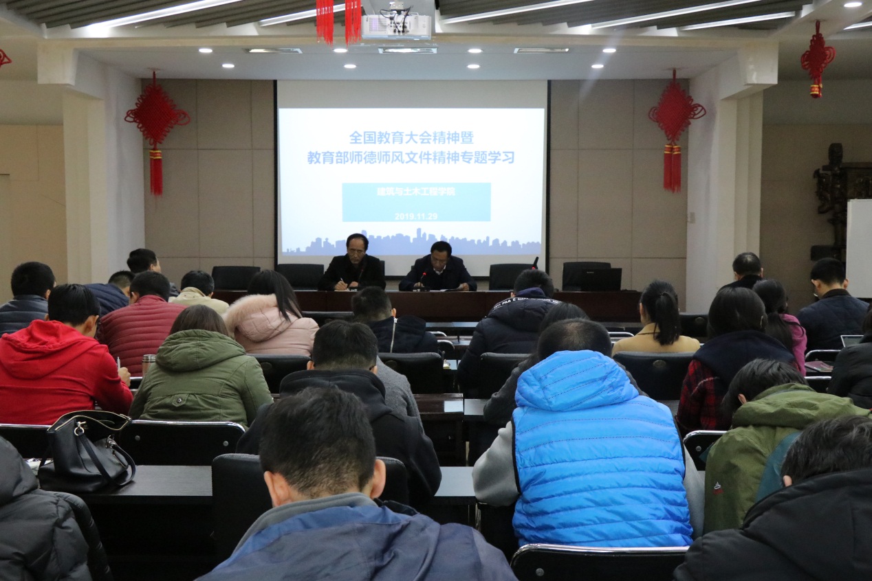 为深入贯彻落实全国教育大会精神,扎实推进永利官网师德师风建设,11月29日上午,建工学院在学院五层会议室召开全国教育大会暨教育部师德师风文件精神专题学习会。