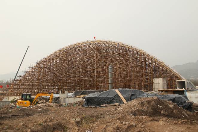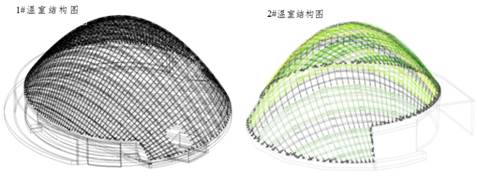 展览温室共三个,均采用木结构体系。1#、2#、3#展览温室投影总面积分别约为5521㎡、2350㎡、1470㎡。其中,1#主馆木结构的跨度达90m,为目前世界第一。其大胆的设计构思、体系的复杂多变、构件制作及装配施工的超难度,预示着该项目的健康监测不仅具有重要的工程价值,更具有极高的学术价值。