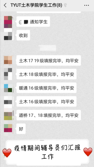 大家一声声“平安”的信息是我最大的期盼;一句“老师,何时返校啊”,我看到了大家的急切;“老师,不好意思”这是我提醒忘记填报信息学生的反馈,“谢谢老师”是我每天听到的话语;有人想开学去我办公室坐坐,有人想和我加微信,闲暇时调侃几句;有人让我帮他取落在学校的东西……这些让我感受到了人与人之间的“信任”和理解,我想说,同学们,请相信我,有事一定要找我!