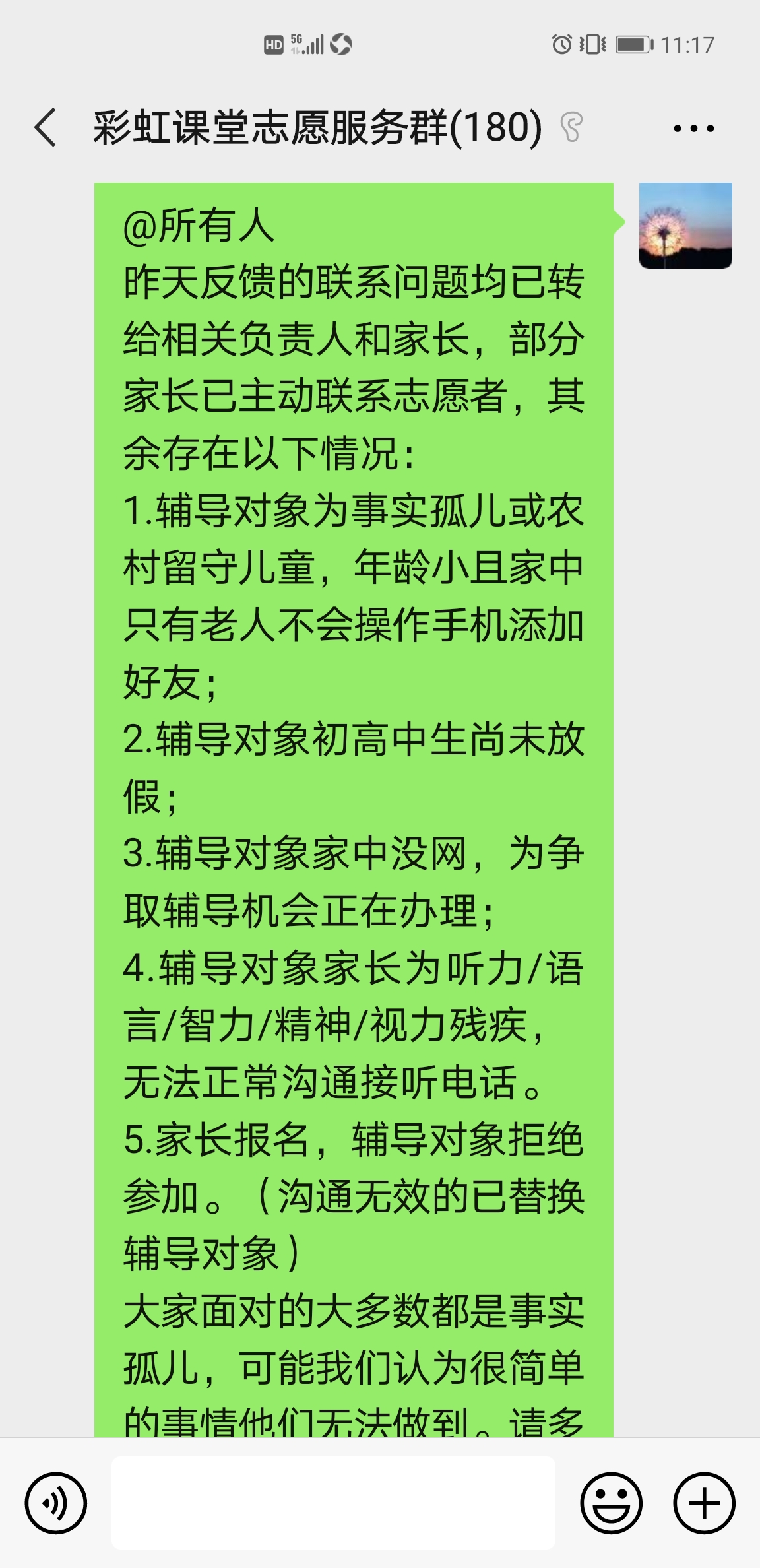 为了切实解决留守儿童在疫情期间的课业辅导难题,永利官网发扬热心公益,关怀儿童的精神,精细筹划,应时而动,发起了“彩虹课堂”线上一对一课业辅导项目。此次活动共招募了学院一百五十余名本科生和研究生参与志愿服务活动,为平定县各小学、初中的农村留守儿童提供了免费的一对一线上课业辅导。志愿者们通过QQ、微信等新媒体平台拉近了和孩子们的距离,以线上语音、在线答疑、视频教学等方式,让孩子们在家中也能得到“专属老师”的辅导和关怀。