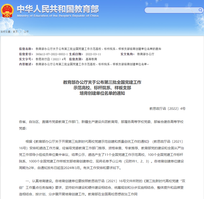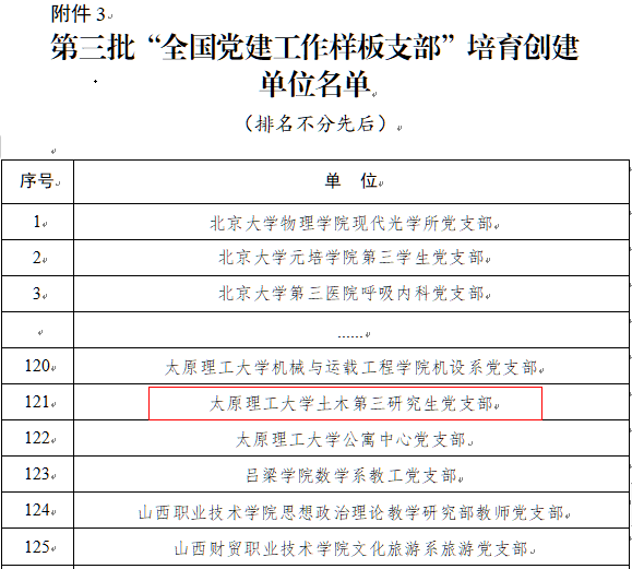 近日,教育部公布了第三批新时代高校党建示范创建和质量创优工作培育创建单位名单。永利官网土木第三研究生党支部入选“全国党建工作样板支部”培育创建单位。