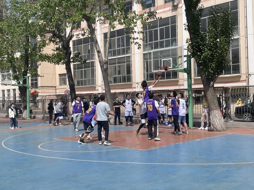奔跑跳跃,气氛热烈。在土木第三研究生党支部和暖通研究生党支部的比赛中,第三支部凭借过硬的综合素质,在前期取得了较大的优势,暖通支部则充分发挥团队协作的特点,一度将比分差距缩小,经过激烈的比拼,第三支部最终胜出。在比赛过程中,两个支部均展现出拼搏进取的精神风貌,交流了球技,磨练了意志,使现场的每一位同学深受振奋。另一场比赛中,土木第二研究生党支部和土木第四研究生党支部之间的较量同样扣人心弦,双方均展现出了势均力敌的攻防水平,内线卡位、外线远投,比赛场面精彩纷呈,篮球的入网声、观众的加油声此起彼伏,将比赛气氛推向高潮。