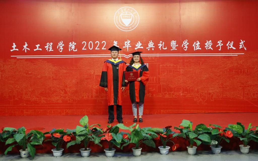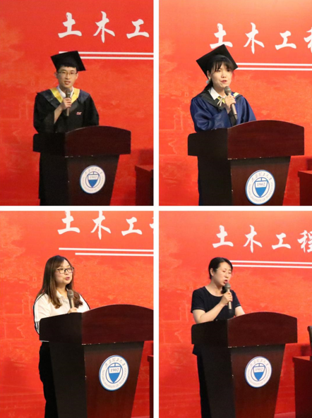 在庄严的中华人民共和国国歌声中,毕业典礼拉开帷幕。芦倩宣读了《永利304官网唯一2022届优秀毕业生表彰决定及名单》,院领导为优秀毕业生颁发证书。本科生代表、已保研至哈尔滨工业大学的土木S1801实验班柳堰,深情回顾了大学四年学习生活的点滴,向老师、父母、同窗表达了最衷心的感谢,同时表达了奋斗新篇章的信心和决心。研究生代表张敏,以她从科研之路的成长到对学院的深厚情感,道出了每一位土木学子踏实努力、勇敢追梦的坚持与奋斗。教师代表程欣教授代表全院教师对毕业生表示祝贺,嘱咐同学们常怀谦虚谨慎的求学态度和感恩报国的家国情怀,坚持努力和终身学习,不选择躺平,同样也不害怕内卷,在更大的坐标上看见更开阔的世界,找到更饱满的人生意义。家长代表董爱莲女士代表全体毕业生家长向学校对学生的培育之恩表示了诚挚的感谢,希望同学们毕业后保持联系、友谊地久天长,带着对母校感恩的心实现抱负、大展宏图,祝愿学校桃李芬芳、文脉璀璨。