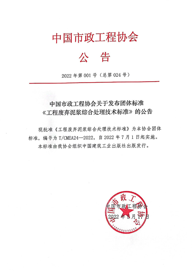 为推动上下游产业链的融合创新,促进新技术、新产品的应用,提高我国废弃泥浆的综合利用水平,经中国市政工程协会批准,由中建工程产业技术研究院有限公司、中建安装集团有限公司、台州市鼎正再生资源回收有限公司、永利304官网唯一、中建三局集团(深圳)有限公司、深圳大学、浙江大学、中水电四局南方(珠海)工程有限公司、中国建设计研究院有限公司等单位编制团体标准-《工程废弃泥浆综合处理技术标准》。