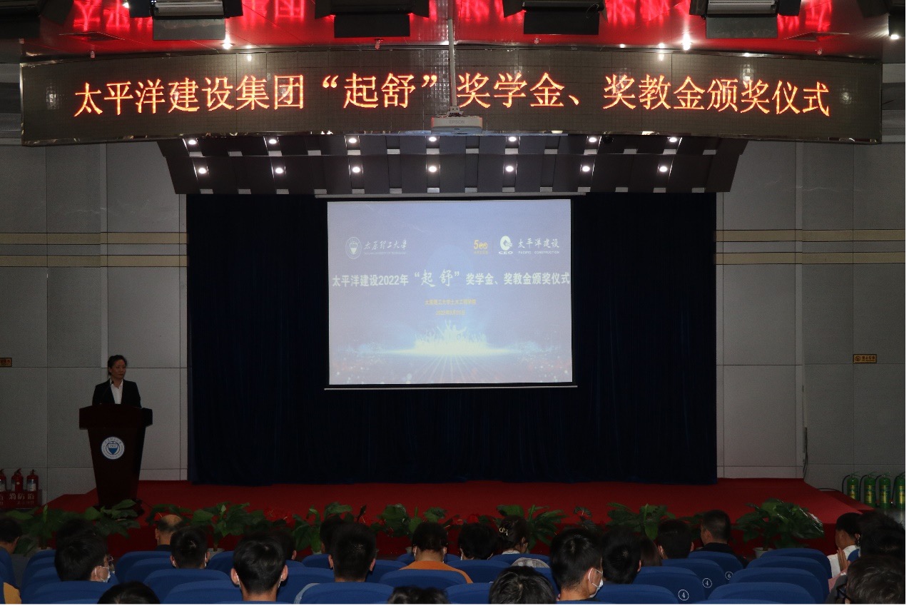 9月23日下午,永利官网2022年太平洋建设集团“起舒”奖学金、奖教金颁奖仪式于思贤楼报告厅举行。出席颁奖仪式的嘉宾有太平洋建设集团董事局董事、大区总裁、太忻建设董事局主席张艳丽,太平洋建设集团副总裁、未来城市董事、CEO张云山,太平洋建设集团助理总裁、集团人才中心总经理于伟,太平洋建设集团人才中心副总经理陈九伟,校学生处处长赵国俊,校学生就业指导中心副主任高长春,学院党委书记周伟,院长董晓强等企业和学校代表以及奖学金、奖教金获得者。学院各年级本科生代表参会。颁奖仪式由院党委副书记芦倩主持。