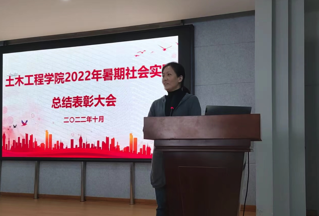 院党委副书记芦倩作总结讲话,她肯定了土木学子在暑期实践活动中取得的成果,对获奖的优秀实践队伍和个人表示祝贺。她指出,学院高度重视暑期社会实践活动,为同学们提供了磨练品格、服务社会、全面发展的平台,希望同学们继续发扬不畏艰难、奉献社会的传统,在实践中长才干,在笃行中获真知,实现全面发展。同时,她对学院今后社会实践活动的开展提出了三点要求:一是要主动拓展实践思路,创新实践方式,将社会实践进一步做深做实;二是要加强宣传,做好典型示范,持续打造一批精品和典型,提升学院社会实践的知名度、美誉度、贡献度,为学院发展增光添彩。三是要着眼长远,形成长效机制,人人知实践、人人想实践、人人去实践。