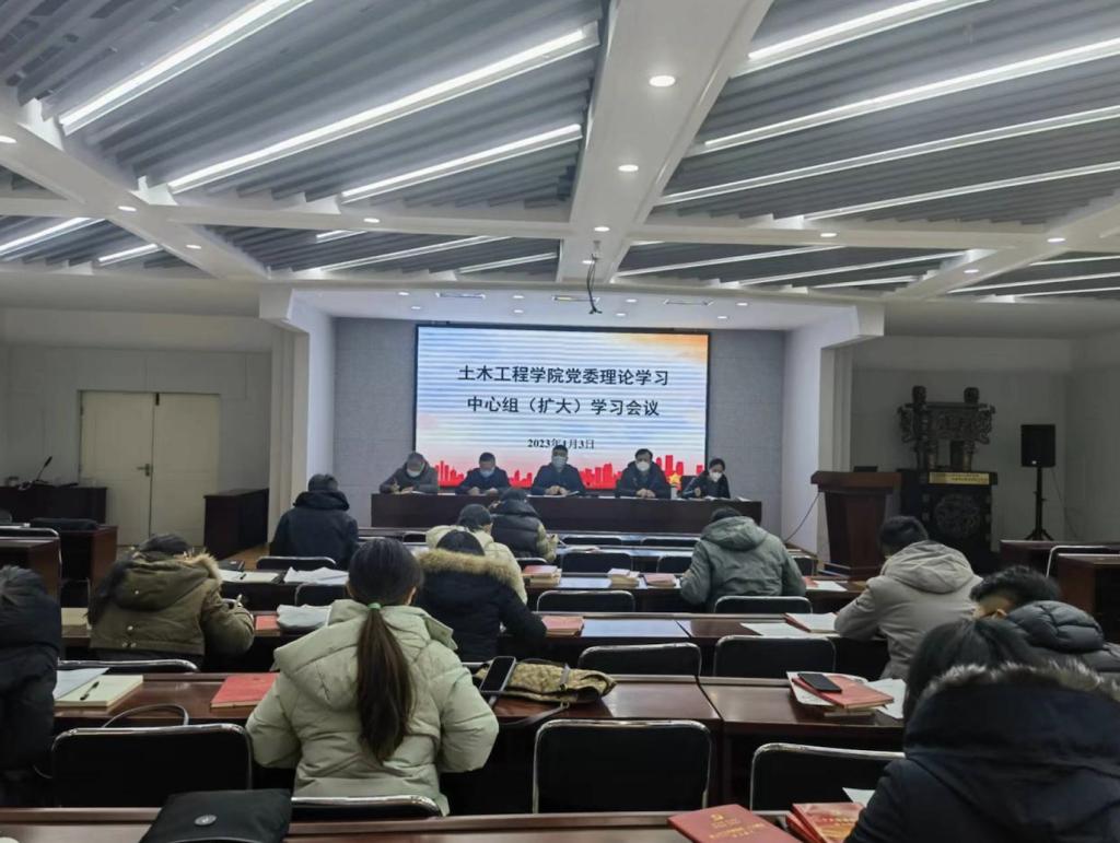 1月3日上午,永利官网2023年第一次党委理论学习中心组(扩大)学习会召开。院领导班子、系部中心主任、三办一委负责人、工会主席、党支部书记参加,院党委书记武佐君主持会议并讲话。