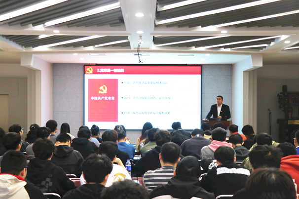 武佐君书记进行了开班动员,强调了入党积极分子培训的重要性,并以学习新党章为切入点,要求参加培训的同学充分认识到党章的地位和作用,扎实学习《中国共产党章程》和党的基本知识,深刻领会党章的变革和意义,准确把握党章各项规定和要求,做到学有所得,学有所成,坚定理想信念,求真务实、争取早日加入中国共产党。