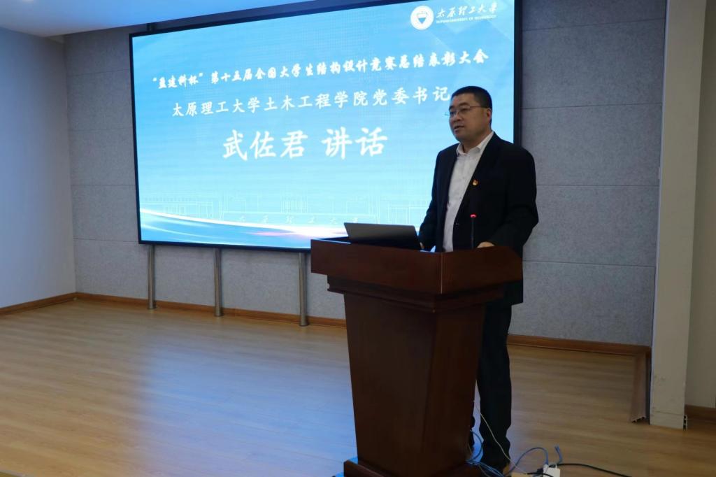 武佐君作总结讲话,他首先对雷宏刚老师不吝赐教,耐心指导的格局表示感谢,对全院师生胸怀大局、自信开放、迎难而上、追求卓越、勇于奉献的精神表示肯定,对获得先进个人的师生们表示热烈的祝贺,对申办、组织、筹备、服务、参加大赛付出辛勤工作的全体土木师生致以衷心的谢意。他指出,永利官网要以结构竞赛的成功举办为契机,以“百廿土木”的历史底蕴,团结动员全院师生凝心聚力,开拓进取,为建设特色鲜明,具有重要行业影响力的高水平一流永利304官网唯一而奋斗。