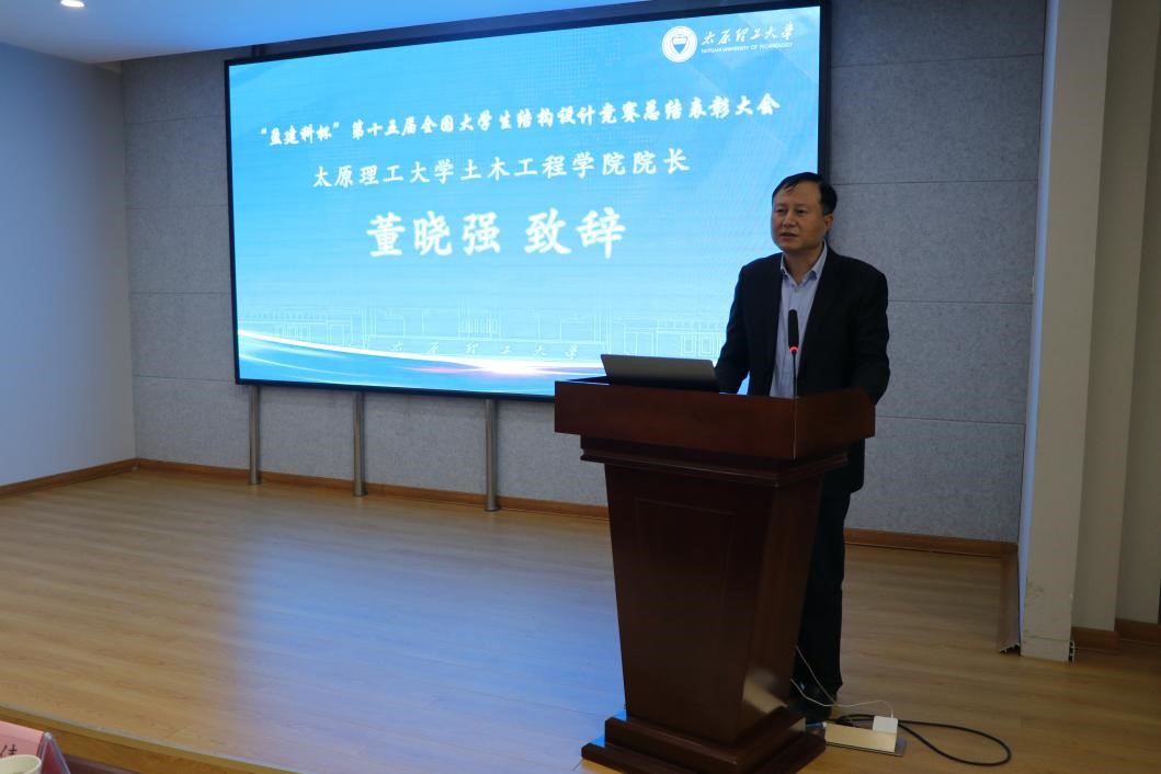 董晓强在致辞中回忆了申办竞赛前的忐忑、申办成功的喜悦和成功举办后的自豪,充分肯定了在竞赛申办、筹备以及举办期间各位专家、老师和志愿者同学的辛苦付出和奉献精神。同时指出,通过本次全国性竞赛,全院上下更加坚定了建设一流土木的决心,并以此为契机,为学院高质量发展提供更强劲的动力。