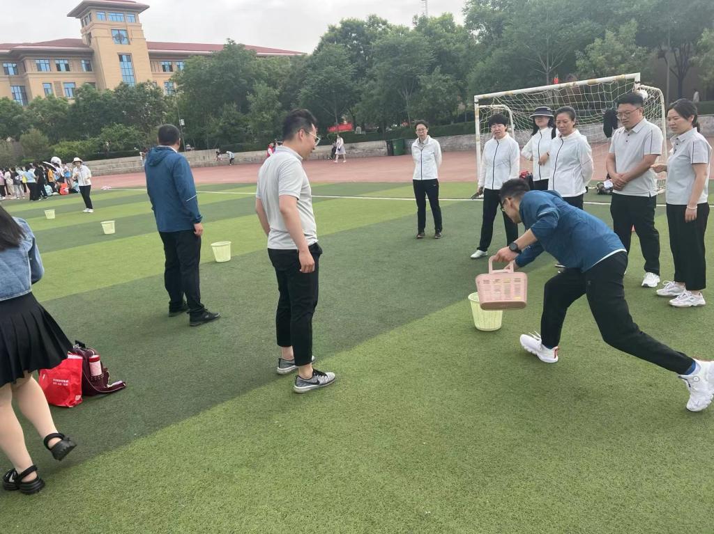 校运动会的目的在于活跃校园文化氛围,加强教师之间的交流,激发教师们进行体育锻炼的意识,丰富教职工的业余生活。在“抢种抢收”比赛场上,姚鑫等6位老师个个干劲十足,热情高涨。比赛要求老师们依次在跑步中将道具放入地上的筐中,然后交由下一个老师依次收集,如此往复。