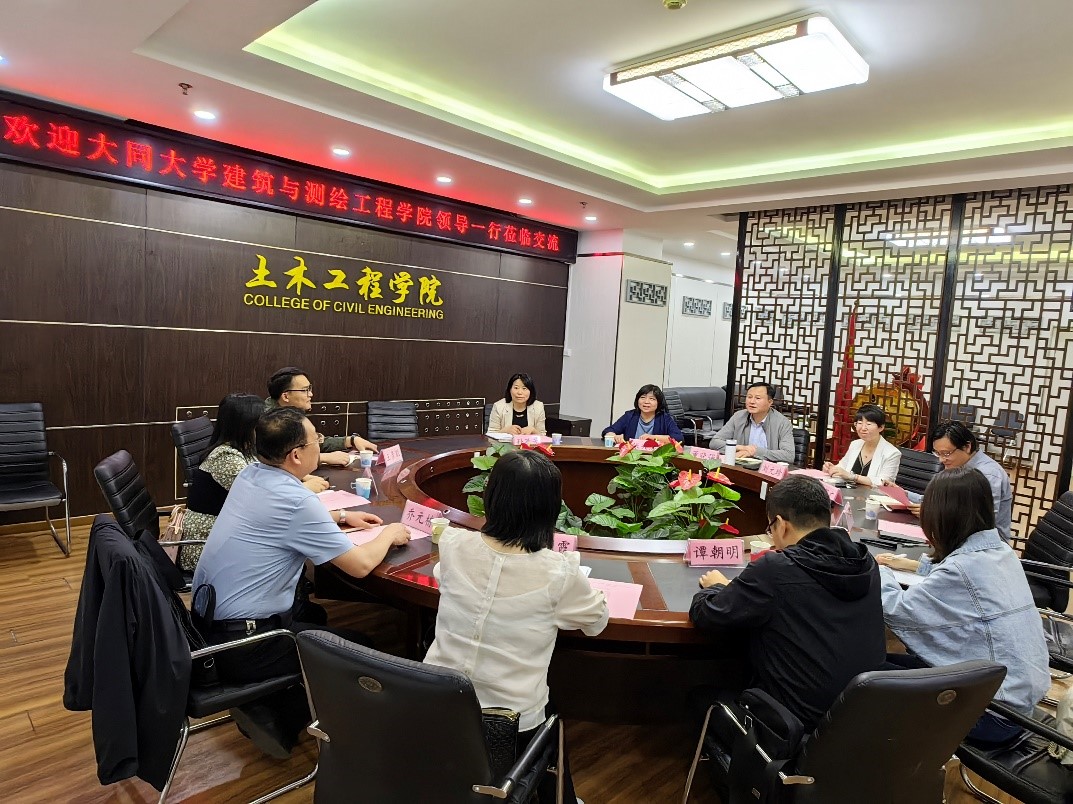 5月24日下午,大同大学建筑与测绘工程学院一行六人来永利官网进行工作学习交流。大同大学建筑与测绘工程学院院长乔元栋、建工系主任张芳芳、建环专业负责人王丽霞、土建实验室负责人谭朝明及专业相关教师鲁志彬、王彦朋、永利官网院长董晓强、建工系负责人刘元珍、建环系负责人张兴惠、实验中心主任孙延芳、教学指导委员会委员张家广、教研室主任邢颖参加了本次会议。会议由董晓强主持。