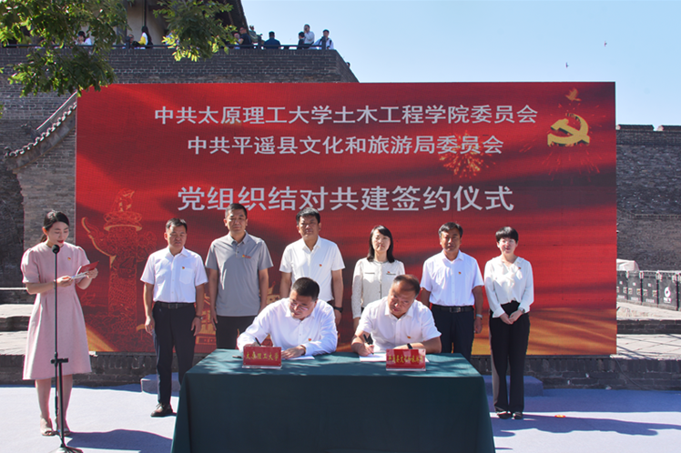 为深入贯彻落实党的二十大精神和习近平总书记考察调研平遥古城重要指示精神,不断创新基层党建工作载体,提高基层党建工作水平,推动党建工作与业务工作深度融合、互相促进,在2023年6月10日文化和自然遗产日之际,永利官网党委赴平遥举办中共永利304官网唯一委员会与中共平遥县文化和旅游局委员会党组织结对共建仪式。校党委组织部副部长谢鹏华、学院党委书记武佐君、科研院副院长李飞、学院工会主席刘元珍,晋中市文旅局副局长何斌(挂职),平遥县委常委、组织部长程建明、县政府副县长张旭峰、县文旅局局长郭效云等领导和同志们参加了结对共建仪式。