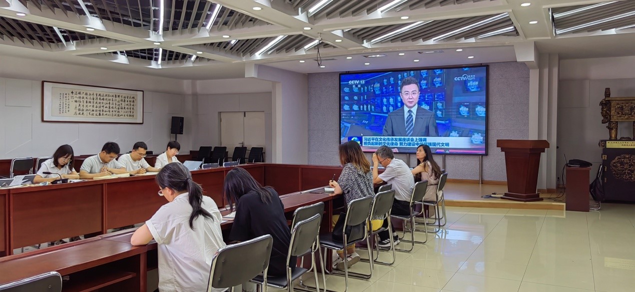 会议集中观看了习近平总书记在文化传承发展座谈会上的重要讲话视频,由武佐君领学了《关于在主题教育中认真组织传达学习习近平总书记在文化传承发展座谈会上重要讲话精神的要求》(教办发〔2023〕17号)文件精神,院长董晓强领学了习近平总书记在听取内蒙古自治区党委和政府工作汇报时的重要讲话精神,党委副书记芦倩领学了《习近平新时代中国特色社会主义思想的世界观和方法论专题摘编》,副院长葛忻声领学了《习近平关于调查研究论述摘编》。