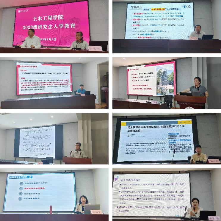 随后,副院长杜震宇以《学科前沿与专业发展》为题,解读了全国研究生教育会议精神,详细阐释了学校研究生教育培养模式与培养方案,学院研究生教育培养工作等等;4日下午,永利官网特聘马克思主义学院秦志敏教授以题为《赵宗复与永利304官网唯一》为同学们进行了生动的爱校荣校教育,通过对秦教授对学校历史发展,赵宗复传奇经历及其博大的精神内涵讲述中,在场师生深受感染与鼓舞;5-6日,院党委副书记芦倩对研究生在校日常管理与校规校纪教育,强调要准确把握学校研究生教育管理模式,遵守校规校纪,坚守安全底线,圆满完成学业任务,做德才兼备的新时代青年;院实验中心主任孙延芳对实验室功能、实验室安全与管理制度进行讲解,提醒同学们在今后的科研过程中,充分做好实验室安全维护,为科学研究打下扎实基础;建工系主任刘元珍从科学道德与学术规范,为研究生进行了详细的政策法规讲解与警示教育,要求研究生要自觉遵守学术规范基本准则,争取高水平科研成果;学院心理健康教育工作专员陈秀梅就学校心理健康工作、新生心理适应与调试、突发事件处理、电信诈骗警示等进行了讲解。