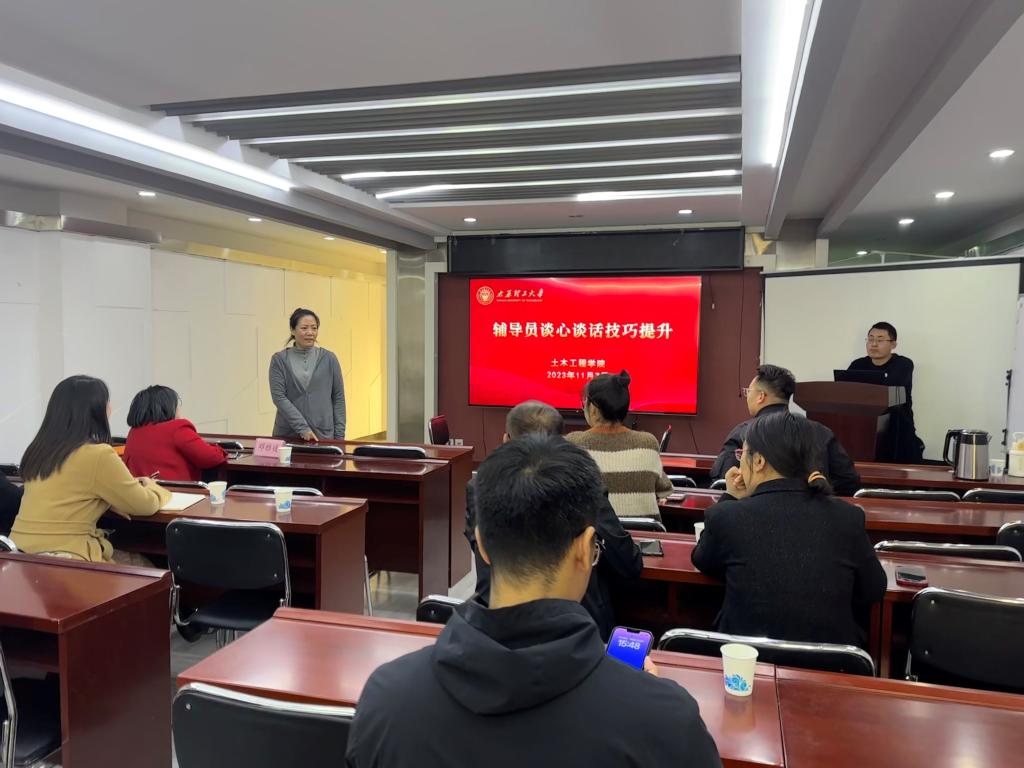 精准思想引领,提升育人效果。为进一步加强辅导员队伍建设,提高辅导员谈心谈话工作技能,增强辅导员理论水平和解决实际问题的能力,对学生成长成才提供切实帮助。11月7日下午,永利官网在博学馆A座五层岩土会议室开展辅导员谈心谈话技巧提升研讨活动。此次活动特别邀请电子信息与光学工程学院党委副书记邓雅媛作为主讲人,活动由永利304官网唯一党委副书记芦倩主持。