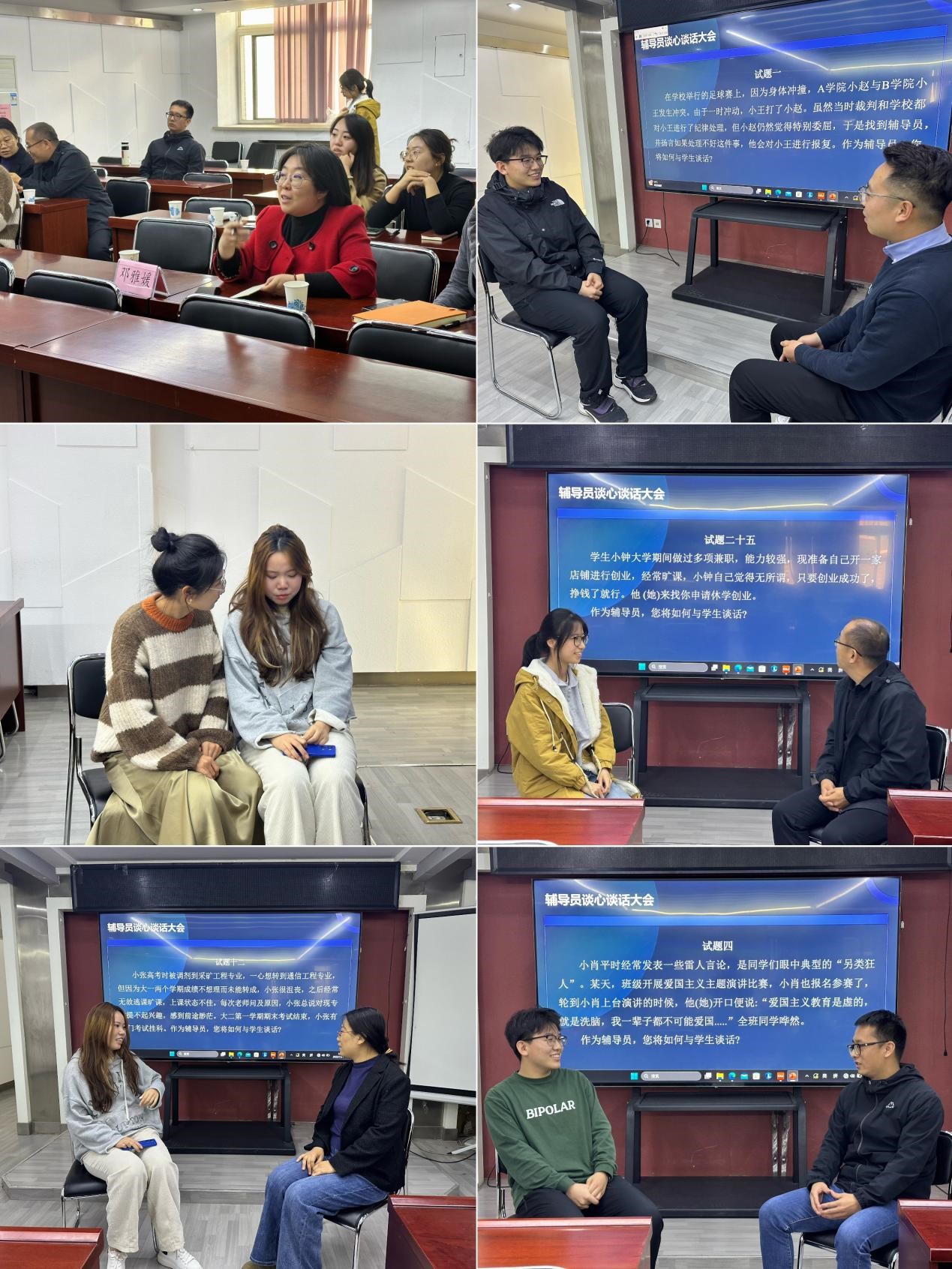 本次活动共准备了27道题目,涵盖了学生宿舍矛盾、就业帮扶、宗教信仰、违规违纪处理等较为全面且具有代表性的师生谈心谈话主题。到场的辅导员老师需要从中随机抽题,2分钟时间熟悉试题,学生助演上台再现试题场景,辅导员与学生开展谈心谈话,帮助该学生解决问题后,就该类问题进行总结陈述。在每一位辅导员作答完毕后,邓雅媛老师和芦倩老师都会为其查缺补漏,找准题眼,打开解题思路。在场的辅导员老师们互相交流,各抒己见,思想碰撞淬炼出新的火花。最后,邓雅媛老师就辅导员谈心谈话比赛的相关注意事项进行总结,告诉老师们要“想学生之所想,急学生所急,办学生之盼”,站在学生的角度思考问题、寻找解题思路,在谈心谈话过程中实现“情”与“理”的合理交融,搭建起直抵学生心灵的大桥,为大学生这个重要群体的成长发展提供“精准帮扶”。