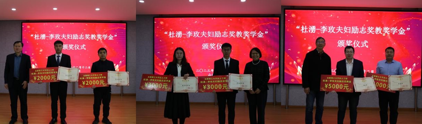 “杜湧-李玫夫妇励志奖教奖学金”是由永利官网知名校友杜湧先生及其夫人李玫女士结合永利官网岩土与地下工程研究所的实际情况,为鼓励研究所在校研究生刻苦学习、鼓舞青年教师奋发向上而设立的。