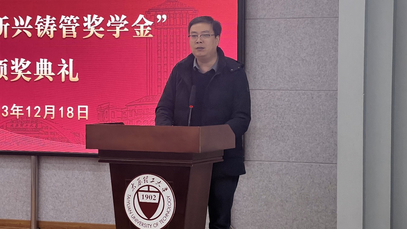 董啸代表新兴铸管股份有限公司向获奖学生表示祝贺。他表示,“新兴铸管奖学金”的设立,是为了进一步推动教育事业发展,加强校企之间的联系,鼓励在校学生刻苦学习、全面发展,促进学生高质量就业,希望在今后持续巩固提升“新兴铸管奖学金”的良好成果,同时不断扩大院企合作范围,希望以此带动更多的社会力量参与到大学教育中,促进产学研深度融合。