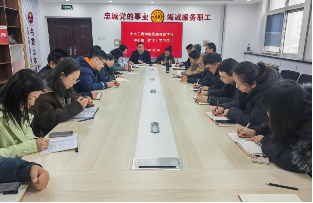 1月19日下午,院党委在四层会议室举行2024年第一次党委理论学习中心组(扩大)学习会,院领导班子、三办一委负责人、部分系(部、中心)主任、党支部书记、工会主席、党外人士代表参加会议。院党委书记武佐君主持会议并讲话。