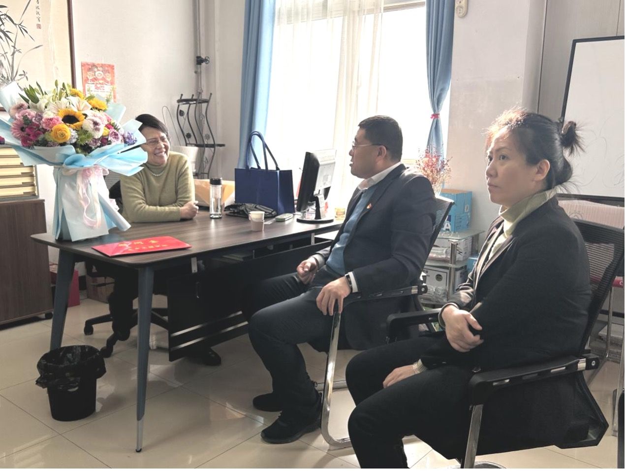 院党委书记武佐君、副书记芦倩带领相关人员看望了离退休的老领导、老党员白晓红同志。武佐君代表学院领导班子向白老师表示诚挚问候和衷心祝福,详细了解了白老师的生活和健康情况,通报了过去一年学院取得的成绩,征求了关于学院改革发展的意见和建议,感谢她为学院、学校和地方建设作出的贡献,希望白老师一如既往地关心支持学校、学院各项事业发展,为永利官网双一流建设、为学院高质量发展献计出力。