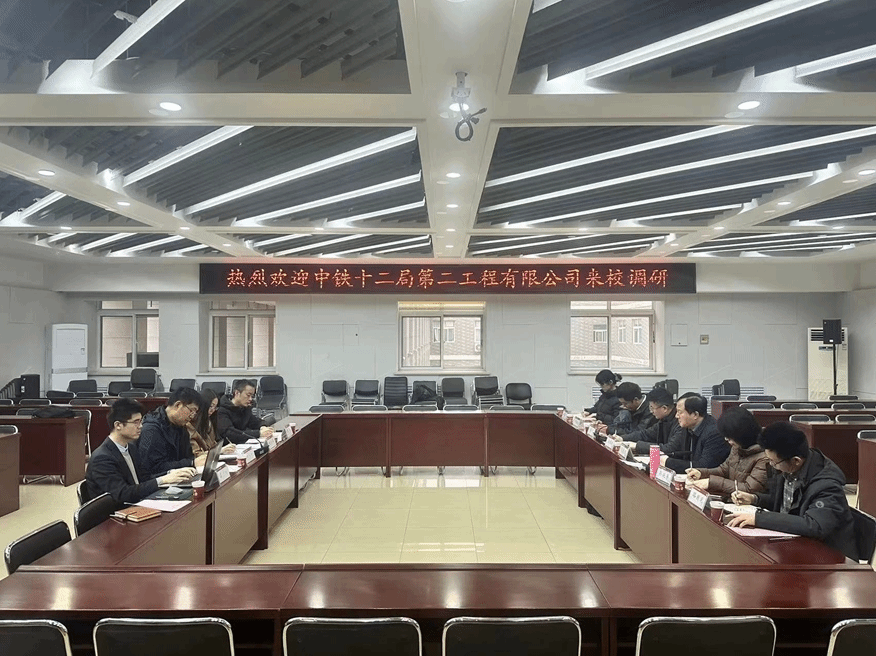 董晓强对中铁十二局集团一行的到来表示热烈欢迎,随后详细介绍了学院的发展历程、学科构建、师资团队、科研平台,重点介绍了土木工程科研进展以及成果转化现状等情况。他提到,学院始终致力于培养高质量人才和推动科研创新,渴望与企业建立更加紧密的沟通与交流机制,实现双方资源的优化配置,共同推进科研成果高水平服务企业的科技进步。