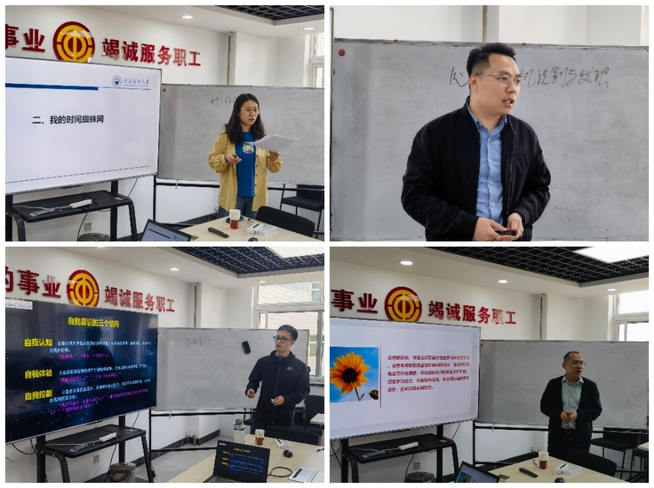 培训会上,各辅导员围绕学业危机、心理干预、自我认知和时间管理四个主题进行集体备课和试讲,逻辑严谨,思维清晰。在每一位辅导员试讲完毕后,首先由学生代表发表意见,指出各辅导员试讲的优缺点。随后,巩彦斌老师和芦倩老师都会为其查缺补漏,找准关键,打开讲课思路。在场的辅导员老师们互相交流,各抒己见,思想碰撞淬炼出新的火花。最后,巩彦斌老师和芦倩老师对各位辅导员的优异给予高度肯定,并针对讲课细节、对象分析、过程设计、分享互动等方面提出宝贵建议。
