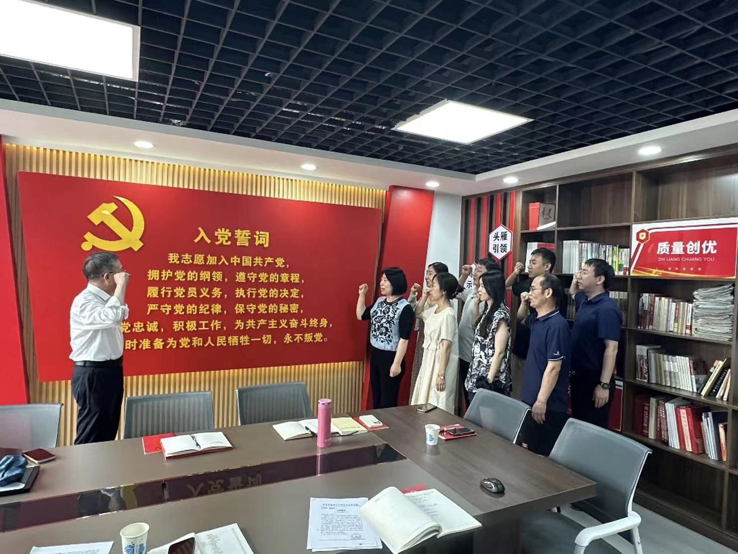 随后,葛院长带领支部全体党员进行了重温入党誓词。在庄严的氛围中,全体党员教师高举右拳,郑重宣誓。铮铮誓言铿锵有力,彰显了党员爱党爱国的赤诚之心。这一刻,大家心潮澎湃,感受到了作为一名共产党员的责任和担当,不仅是一次思想的洗礼,更是一次精神的升华。
