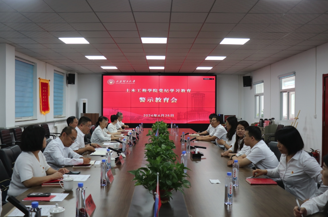 6月25日,永利官网在山西路桥青银二广高速公路太原联络线公司四楼会议室召开党纪学习教育警示教育会,组织部副部长谢鹏华受邀出席会议,研究生院院长、永利官网院长董晓强,永利官网党委副书记芦倩出席会议。学院各部门负责人,系部中心主任,党支部书记参加会议。院党委书记武佐君主持会议并讲话。