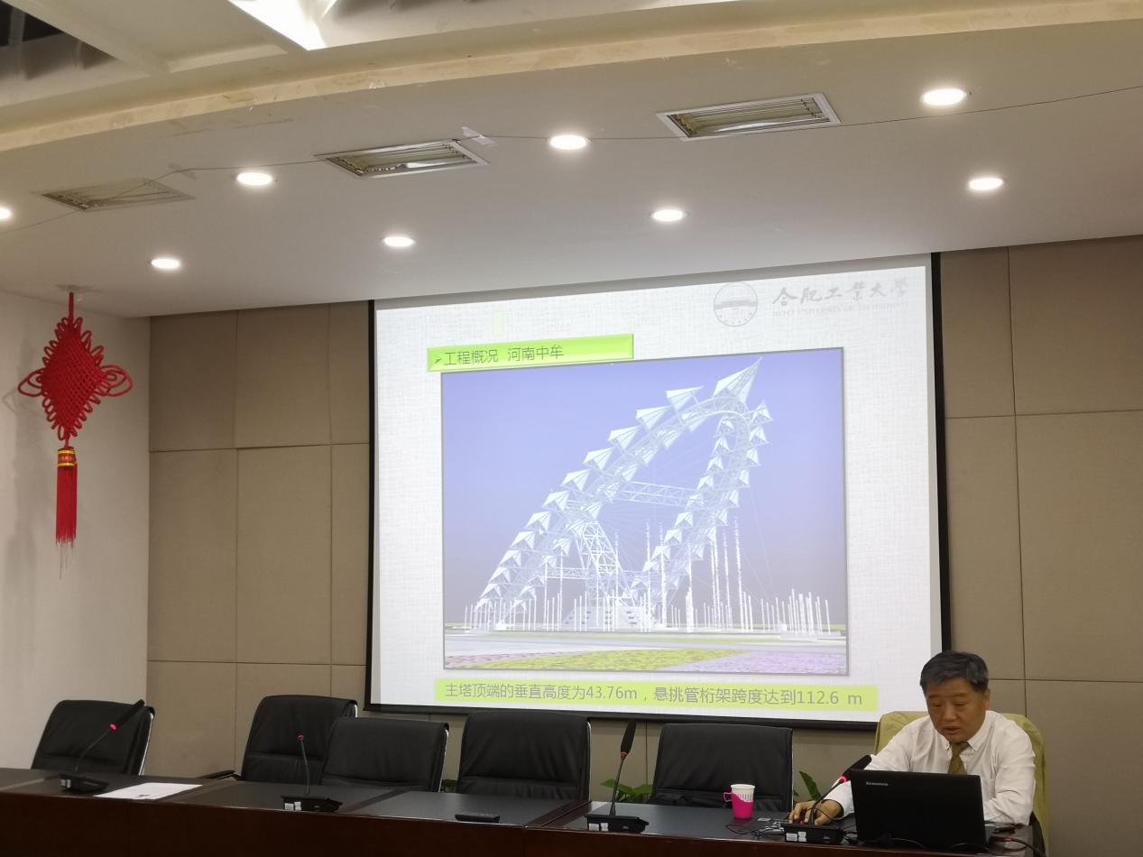 应学院邀请,合肥工业大学完海鹰教授于2019年5月30日到访永利官网,在博学馆五层会议室做了题为“大跨度杂交空间结构施工监测及稳定性分析”的学术报告,由雷宏刚院长主持,土木系师生100余人到场参加。