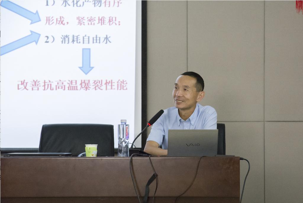 朋教授详细论述了超高性能混凝土高温爆裂机理,系统分析了含水率、骨料类型、升温速率等因素对超高性能混凝土高温下抗爆裂性能的影响,并与老师和同学分享了30年科研生涯心得。