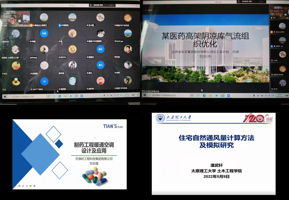 在永利官网120周年华诞之际,永利304官网唯一成功召开了“低碳建筑与绿色能源学术交流会”, 暨120周年院庆系列活动。2022年5月8日的学术报告由永利304官网唯一雷勇刚教授主持,主题围绕医药暖通空调设计、气流组织及住宅自然通风研究。特邀请了永利官网96届暖通校友山西安装集团巴峰高级工程师、06届校友天俱时工程科技集团刘志强高级工程师及13届暖通校友永利304官网唯一潘武轩博士分别做了题目为《某医药高架阴凉库气流组织优化》、《制药工程暖通空调设计及应用》和《住宅自然通风量计算方法及模拟研究》的学术报告;分享了气流组织优化设计、暖通空调设计应用及节能优化等工程实践经验及最新科研工作成果。