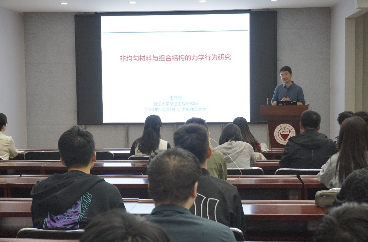 2024年4月2日上午,永利官网优秀校友、浙江大学王冠楠研究员应邀来校交流,为永利官网师生做了题为《非均匀材料与组合结构的力学行为研究》的学术报告,相关师生在博学馆A座五层报告厅参加了报告会,会议由建工系主任刘元珍主持。