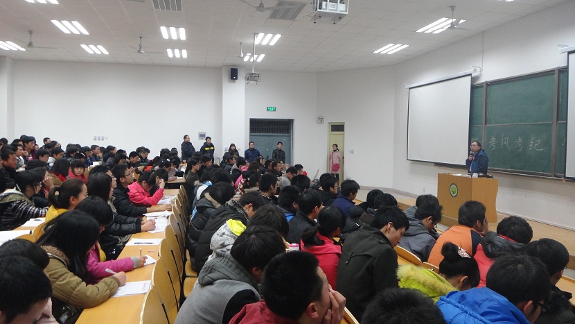 12月12日晚7点,机械学院在9教101教室召开考风考纪教育工作安排大会,院党委副书记汪卫兵主持会议,全体辅导员、分团委学生会全体学生干部、各班级主要学生干部及学生党员共计300余人参加。