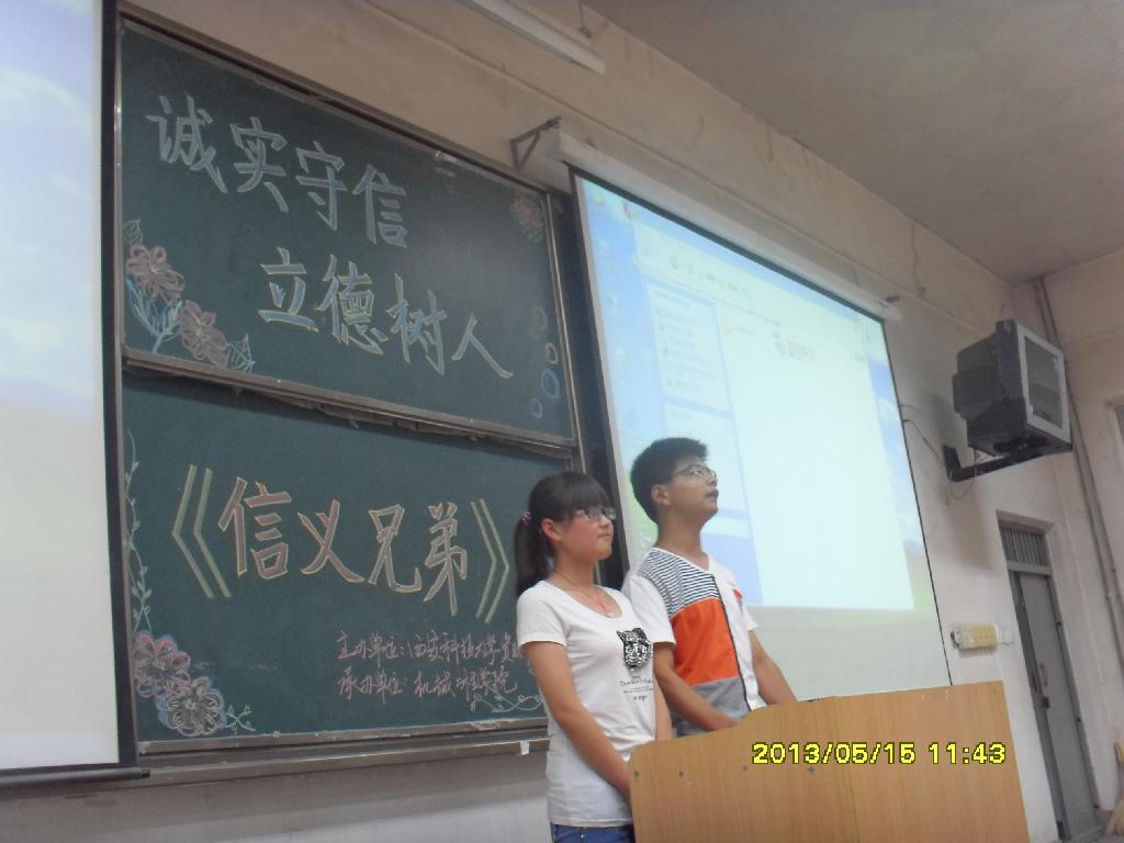 本次活动观看的是影片《信义兄弟》,讲述了以生命践行诺言的湖北孙水林兄弟的感人事迹。信义是立人之本、立国之基,此次活动是学校响应教育部号召而举办的特别活动,旨在深入贯彻党的十八大精神,提高家庭经济困难学生资助水平,推动国家助学贷款工作持续发展。观看影片后,许多同学流下了感动的泪水,并表示深受教育,明白了诚实守信的重大意义,活动到此圆满结束。