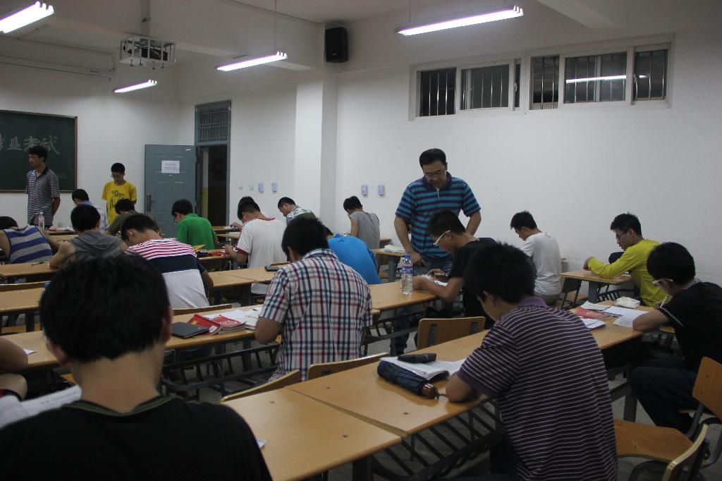 2013年6月21日晚,Beat365第四十一期初党结业考试在10教五楼进行,全体本期学员参加考试。党支部书记张耿老师出席考场。考场上,学员沉着应对,在学习了一系列的培训课后,考生掌握了我党的基本理论知识,大多数学员都交上了满意答卷。