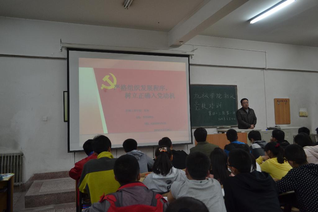 此次党课的主题是“树立正确入党动机,严格组织发展程序”。张耿老师首先提出了入党的十六字方针——坚持标准,保证质量,改善结构,慎重发展。并且要求同学们积极参加党内活动,努力进取,持之以恒,端正入党动机,要有全心全意为人民服务的思想。张耿老师精彩的讲课让同学们了解到入党的流程与条件,为学生党性修养的提高奠定了坚实的基础。