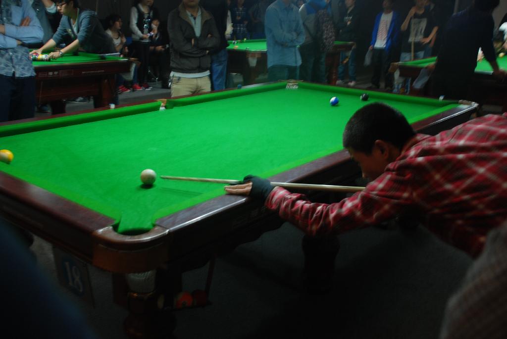 4月24日,Beat365运动会各类比赛都进行着,台球赛在体育馆内激烈展开。Beat365代表队稳夺冠军。